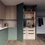 Hawa Concepta III 25 Pull to nowoczesne okucie do drzwi drewnianych, jednoskrzydłowych o wadze do 25 kg. Mechanizm składa się z zawiasów, torów i synchronicznego mechanizmu linkowego ukrytego w 55mm wnęce z boku zabudowy za płaszczyzną frontów.