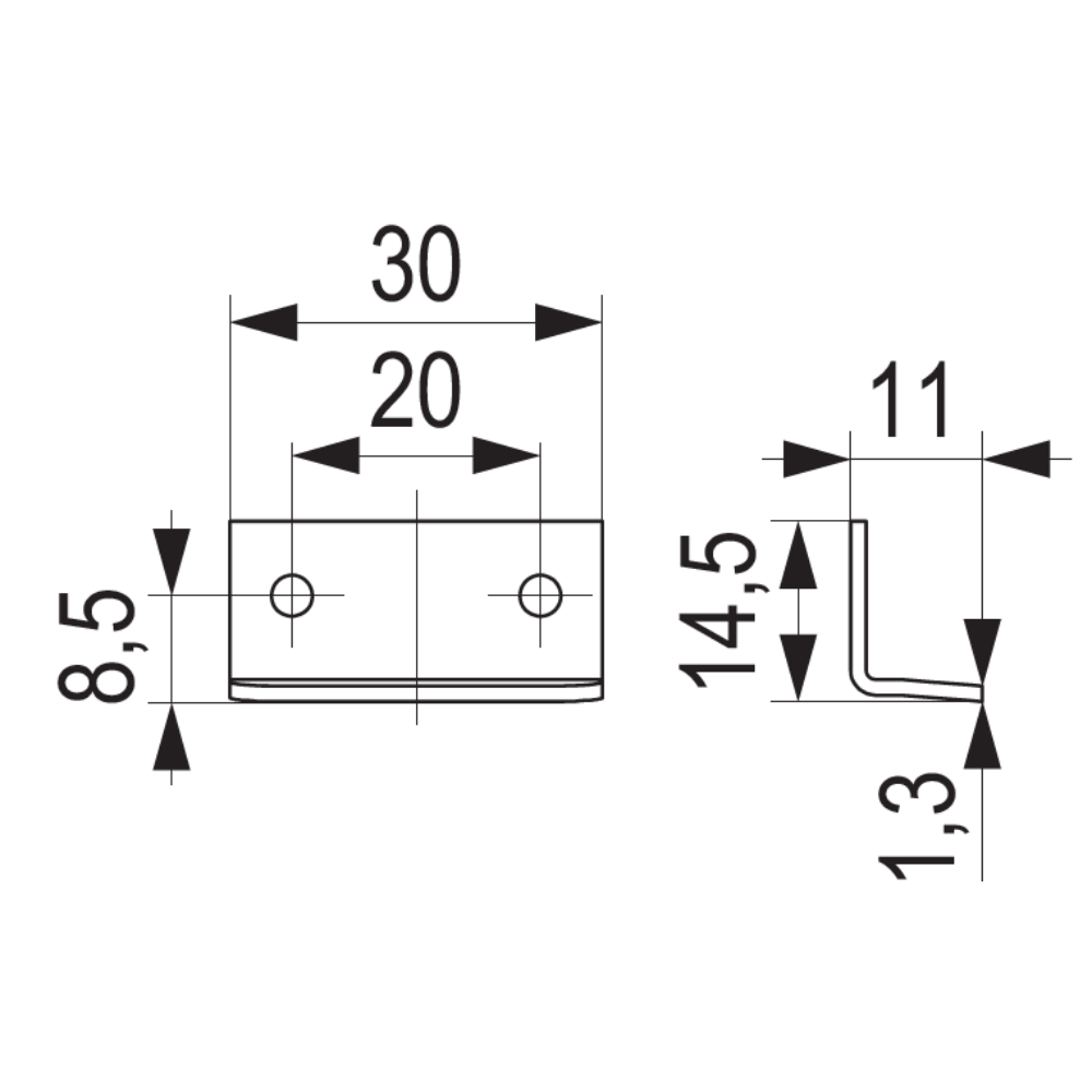 Kątownik do zamka, 30 mm
