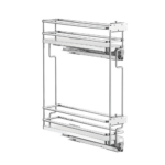 Dwupoziomowy kosz boczny Galaxy do korpusu 200 mm. Owalny chromowany drut z białym pełnym dnem. Montaż do prawej strony korpusu. W opakowaniu znajduje się mocowanie frontu umożliwiające regulowanie w trzech poziomach. Skryta prowadnica pełnego wysuwu z tłumieniem.