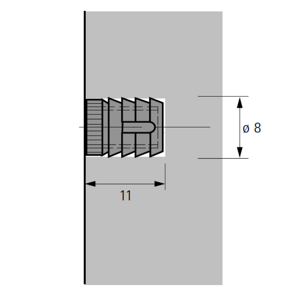Mufa nr 49, M6, 8 mm, 100 szt. Do gwintu M6 Głębokość wiercenia 11 mm Średnica nawiercenia 8 mm Do zastosowania z Rastex 15 / 25, VB 20 / 21 i VB 35 / 36 Tworzywo sztuczne, kolor biały