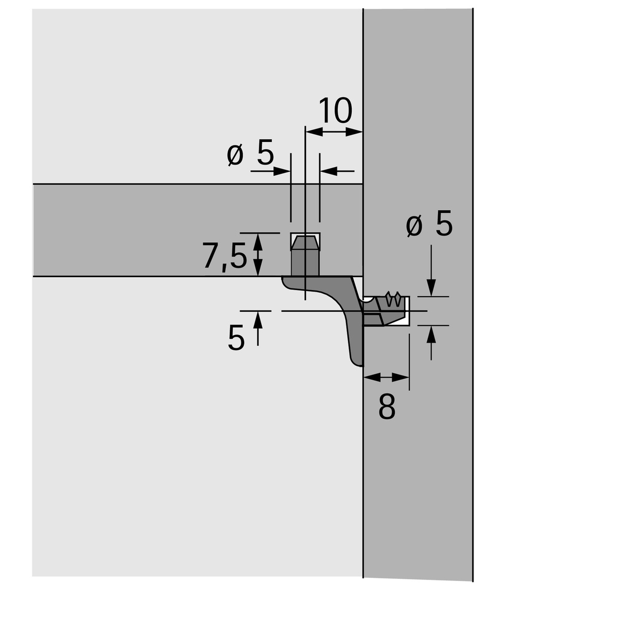 Podpórka do półek Sekura 1.1 Średnica trzpienia 5 mm Dodatkowo 1 trzpień do półki Do zastosowania w Systemie 32 Grupa obciążeń L 75 (75 kg / m²) Cynkowy odlew ciśnieniowy niklowany