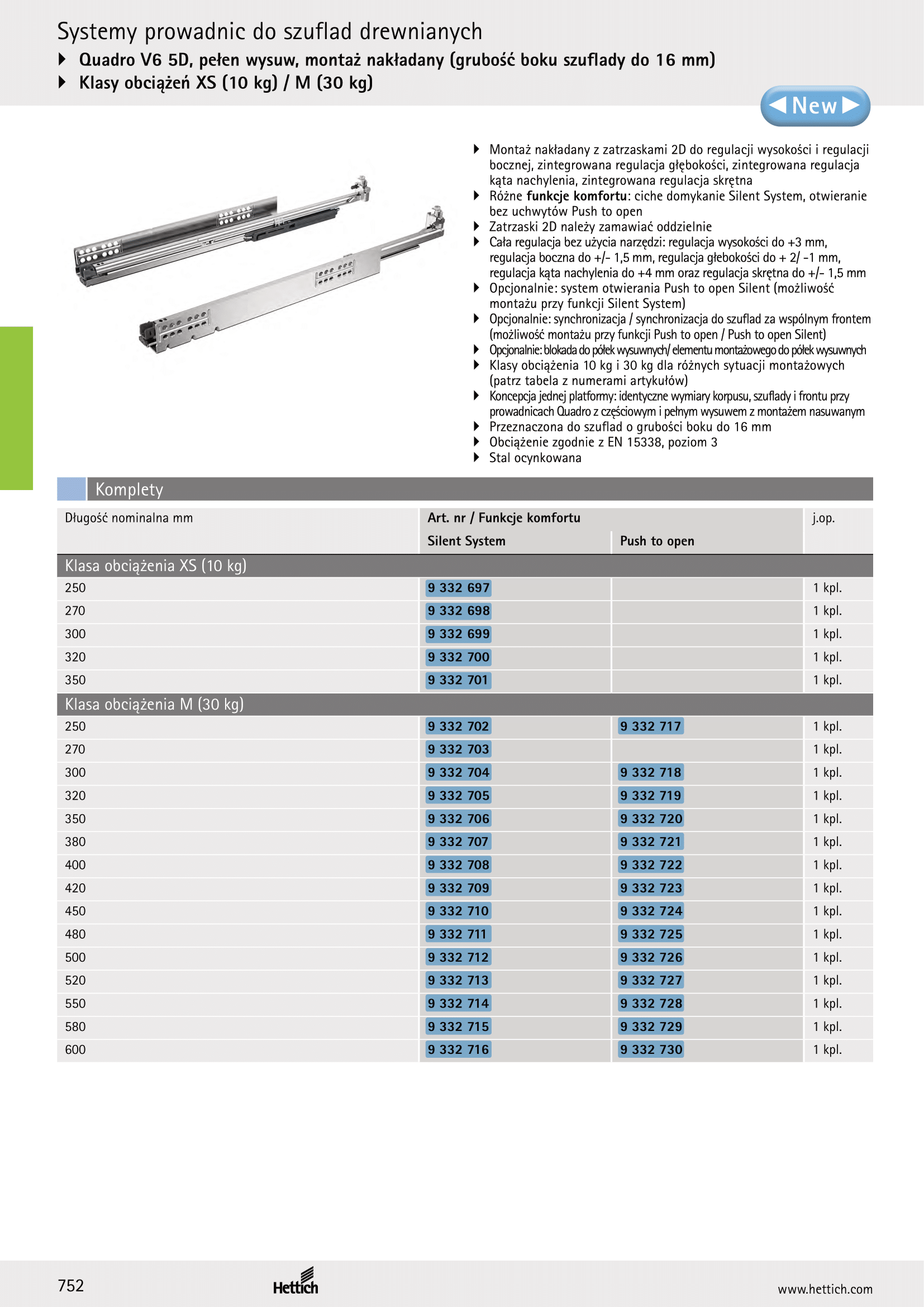 Prowadnica Quadro V6 5D Silent System, kpl. L+P – (z opcjonalnym zastosowaniem Push to open Silent)