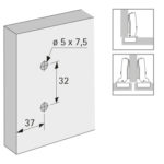 • Montaż Hettich Direkt z kołkami naprowadzającymi i wkrętami specjalnymi (do nawiercenia Ø 5 x 7,5 mm)