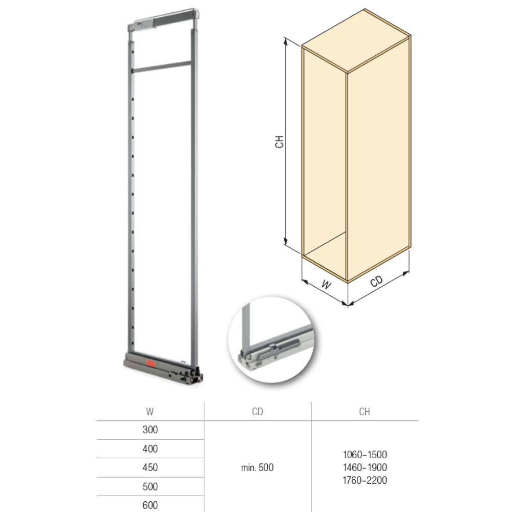 Rama z prowadnicą Cargo VIBO Roll Komplet: rama + połączenie z prowadnicą kulkową (góra+dół), nośność 120 kg. Należy oddzielnie zamówić okucie frontu + kosz. Wersje wysokości: 1160 – 1480 (mm) 1460 – 1780 (mm) 1760 – 2080 (mm) Instrukcja montażu Rama z prowadnicą Cargo VIBO Roll Produkty marki VIBO – włoska jakość i funkcjonalność Produkty […]