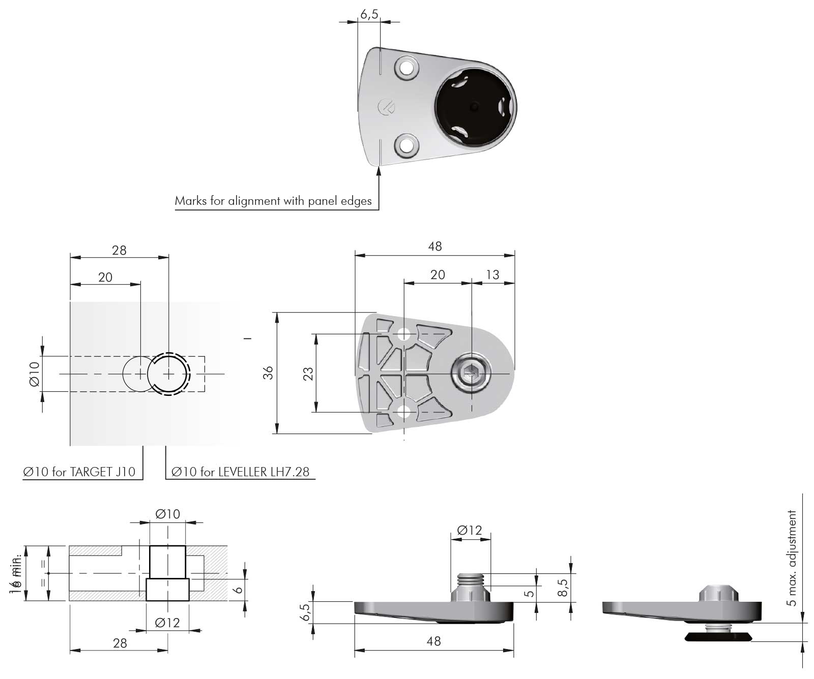 Regulator wysokości LH7.28 regulacja: +5 mm blok regulacyjny nośność 150 kg/szt. Możliwość zastosowania ze złączem Target J10.