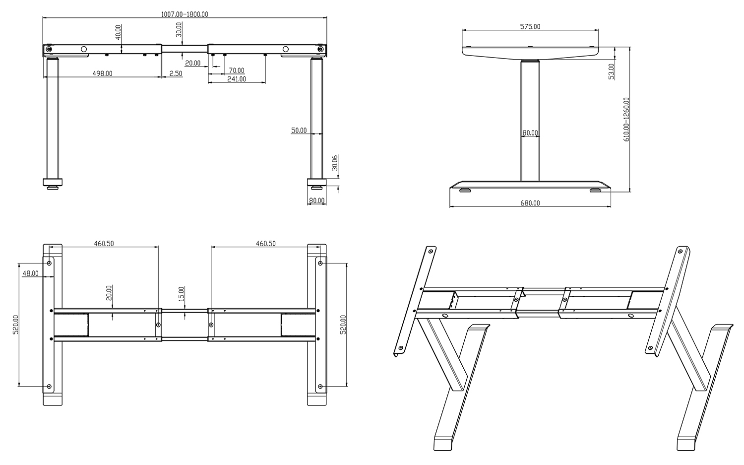 - Regulacja wysokości: elektryczna – 610 - 1260 mm