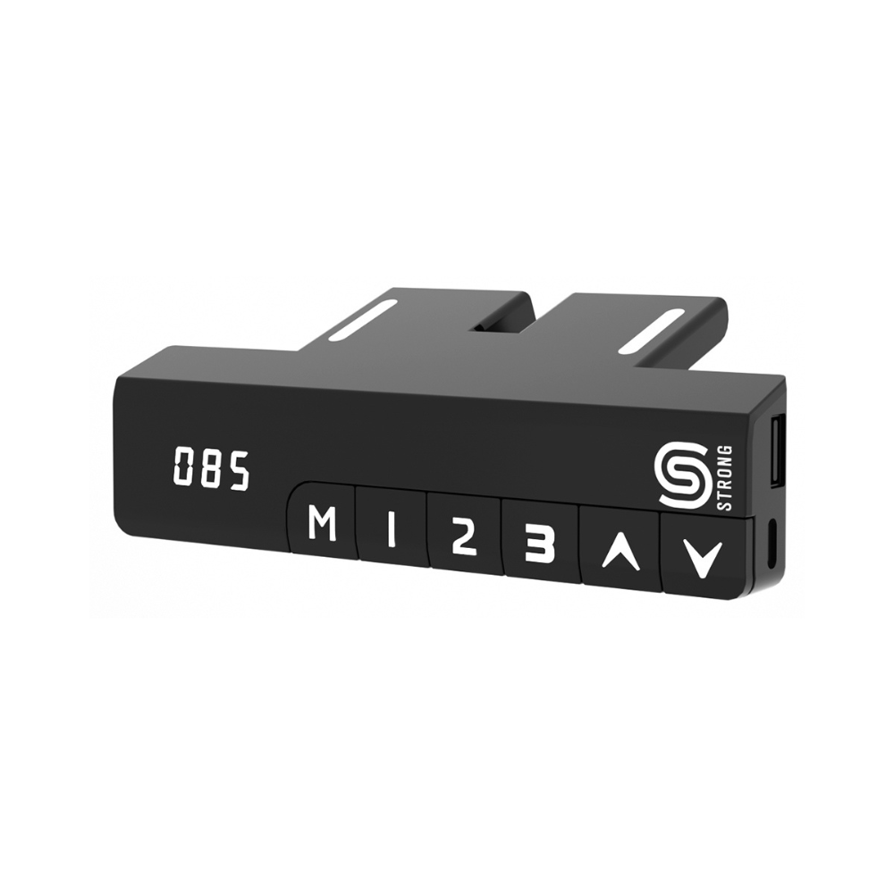 - Komplet zawiera 2 nogi (3-segmentowe, profil 80 x 50 mm, 2 silniki), kontroler pamięci – 3 opcje pamięci + 1 x USB A/C, cyfrowy wskaźnik wysokości, przyciski góra / dół