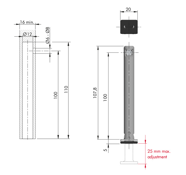 - Stopka regulowana Rekord Tech, H – 100 mm