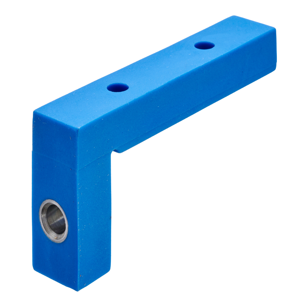- Tworzywo sztuczne, kolor niebieski z tulejką wiertarską z hartowanej stali