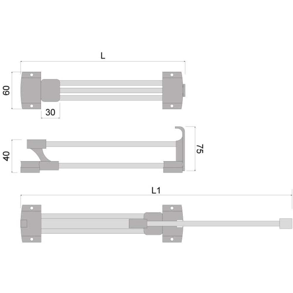 - Długość z wysuwem (mm): 417 / 520 / 620 / 715 / 785 / 920