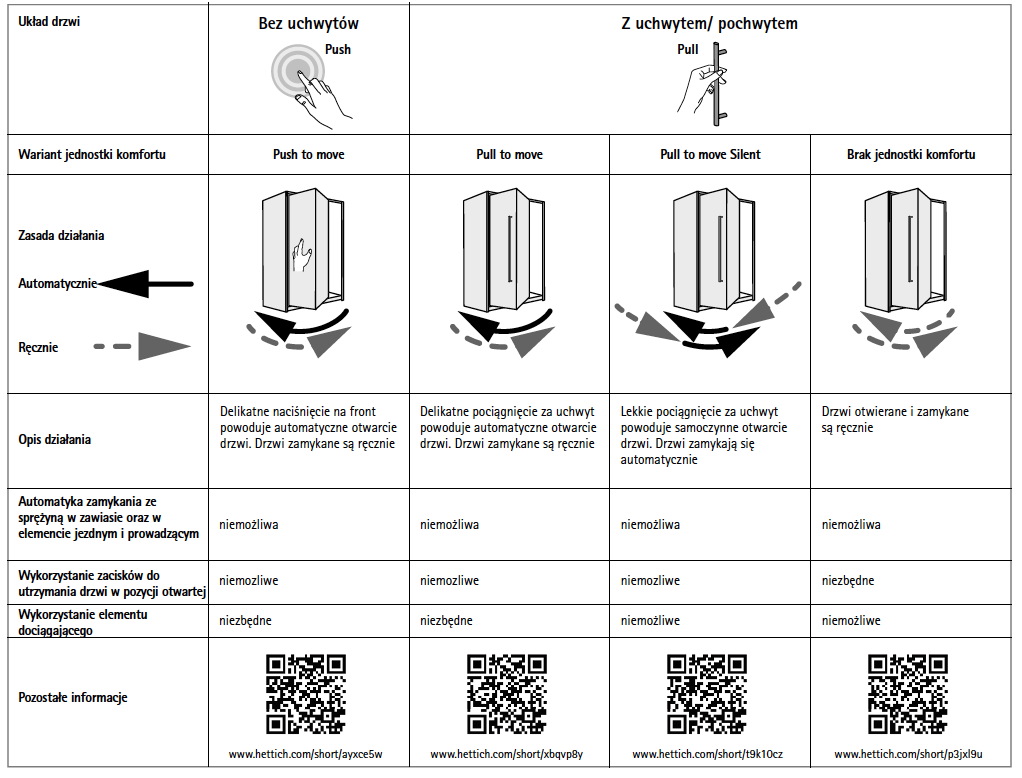 - Na push / dotyk – z jednostką komfortu Push to move, otwieranie na push/dotyk/tip on (front bez uchwytu):